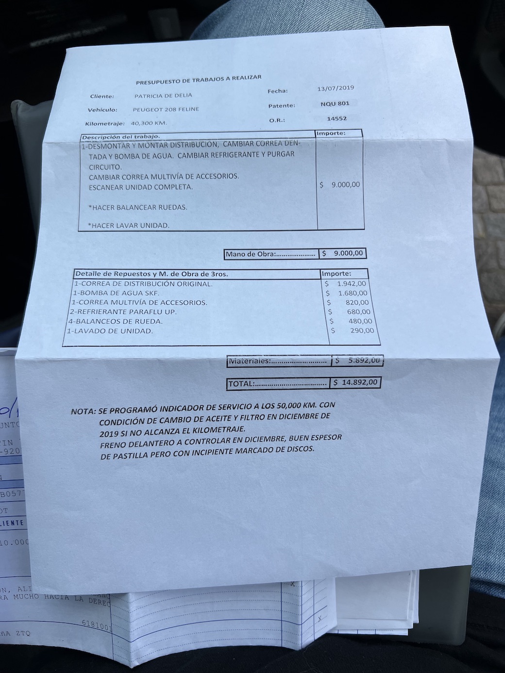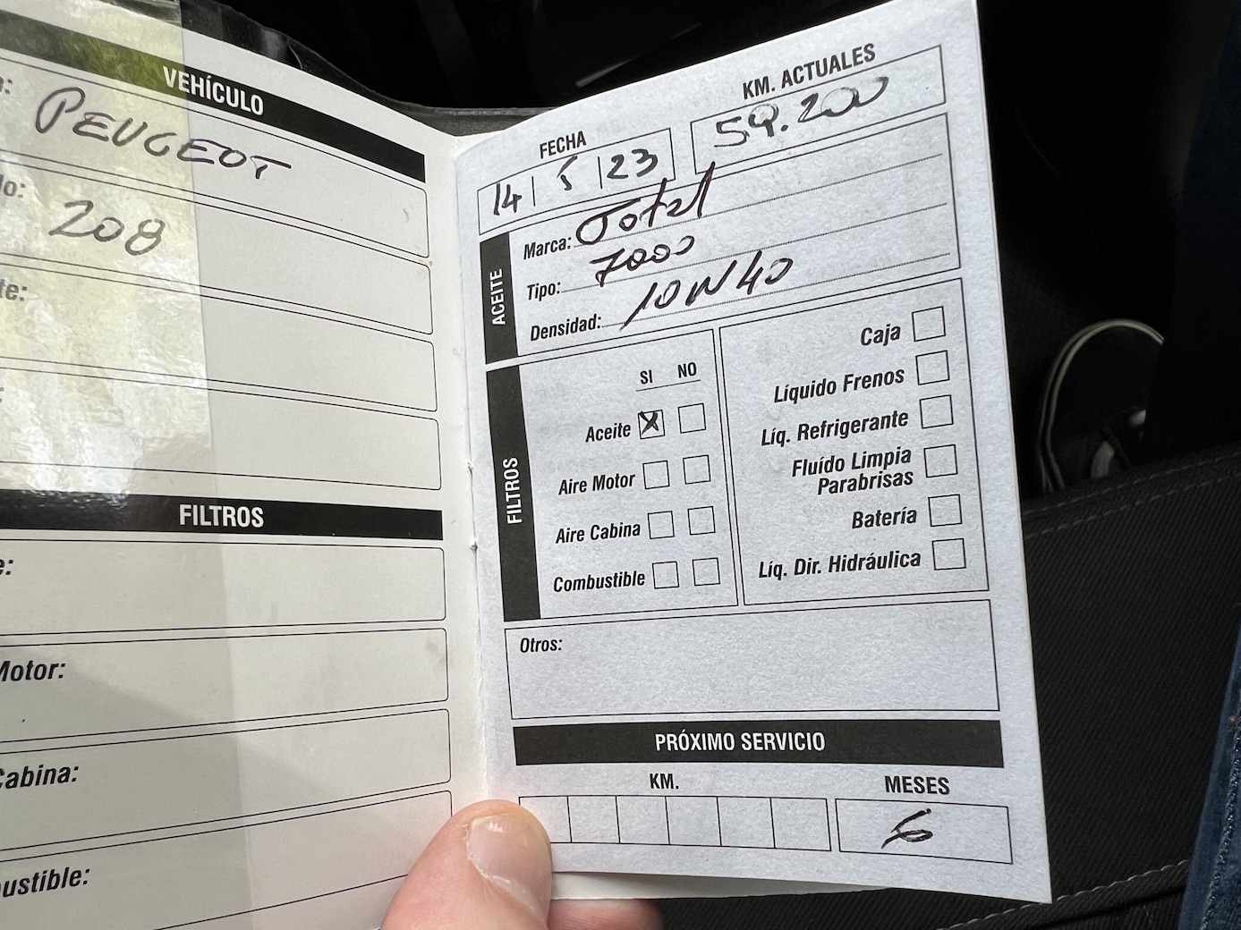 Ultimo servicio realizado en Mayo 2025 con 65.200KM